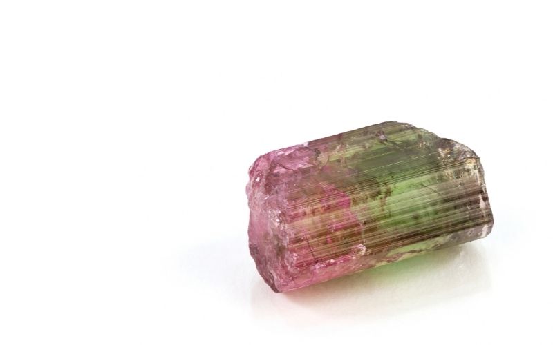 The watermelon tourmaline crystal usually combines shades of green and pink in a single stone. It is also sometimes mixed with white.