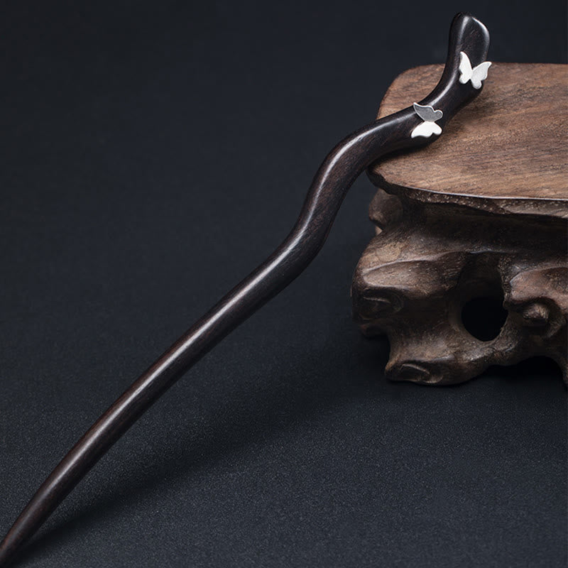 925 Sterling Silver Classical Chinese Style Ebony Butterfly Relax Hairpin