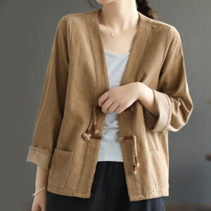 Women’s Cotton Linen Frog-Button Long Sleeve Jacket With Pockets