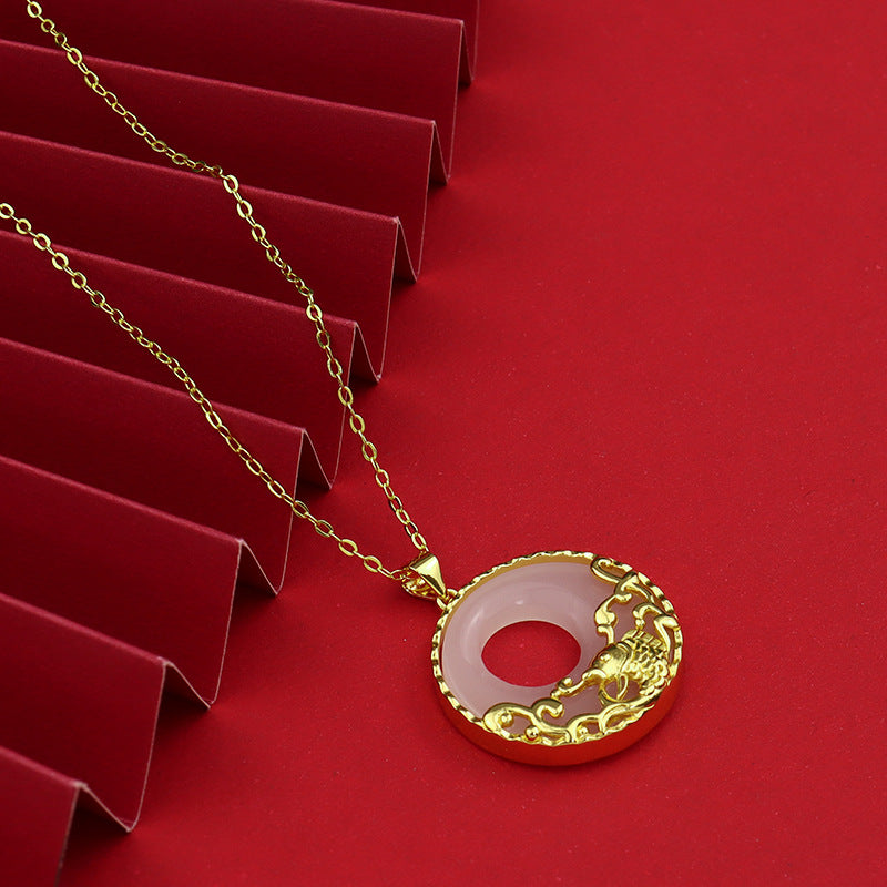 White Jade Koi Fish Titanium Steel Prosperity Necklace Pendant