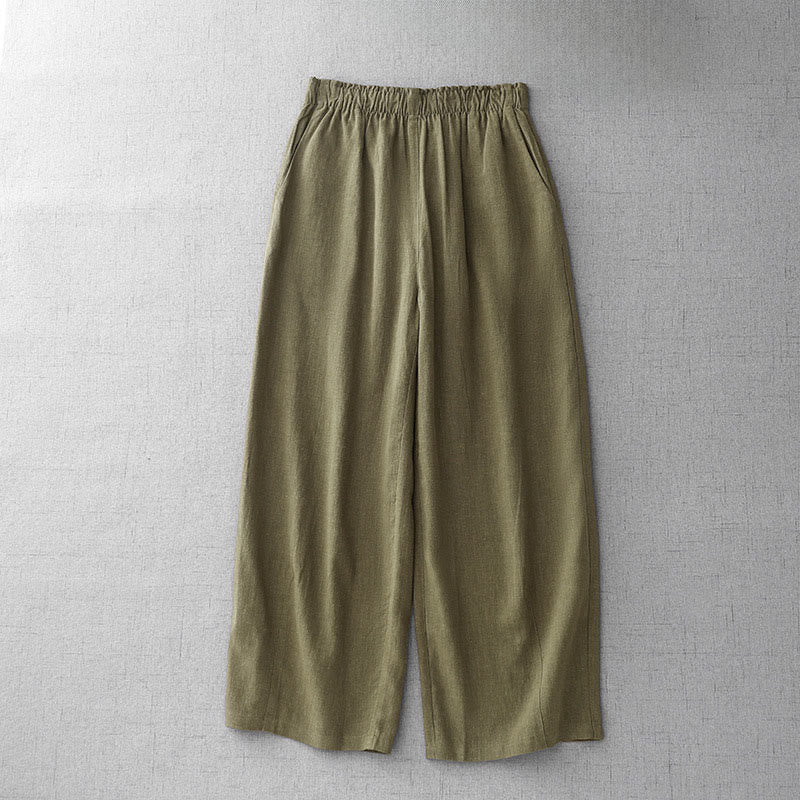 Casual Cotton Slit Hem Women’s 7-8 Length Wide Leg Pants With Pockets