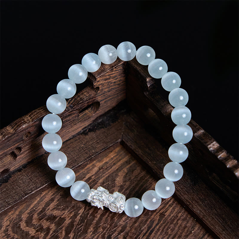 Natural Cat’s Eye Beads 990 Sterling Silver Pixiu Positive Bracelet