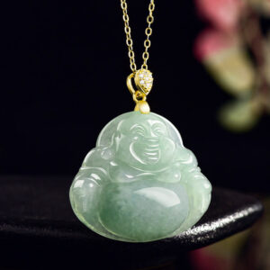 925 Sterling Silver Laughing Buddha Natural Jade Luck Prosperity Necklace Chain Pendant
