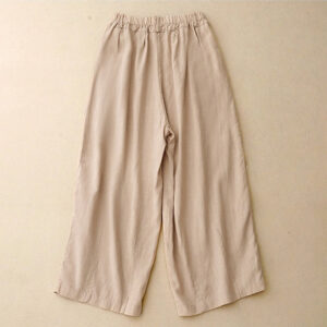 Solid Color Cotton Women’s Wide Leg Pants With Pockets
