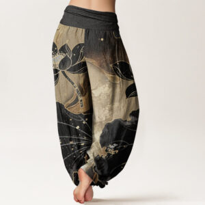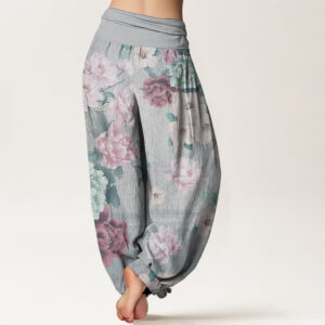 Pure Cotton Casual Peony Flower Women’s Elastic Waist Harem Pants