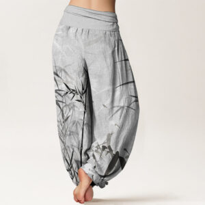 Pure Cotton Casual Bamboo Leaves Women’s Elastic Waist Harem Pants
