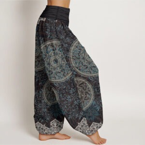 Pure Cotton Mandala Pattern Leaves Women’s Elastic Waist Harem Pants