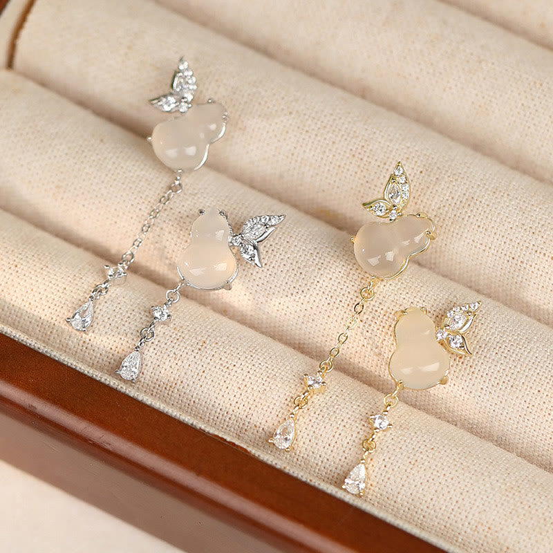 Hetian Jade Magnolia Chalcedony 925 Sterling Silver Butterfly Gourd Luck Earrings