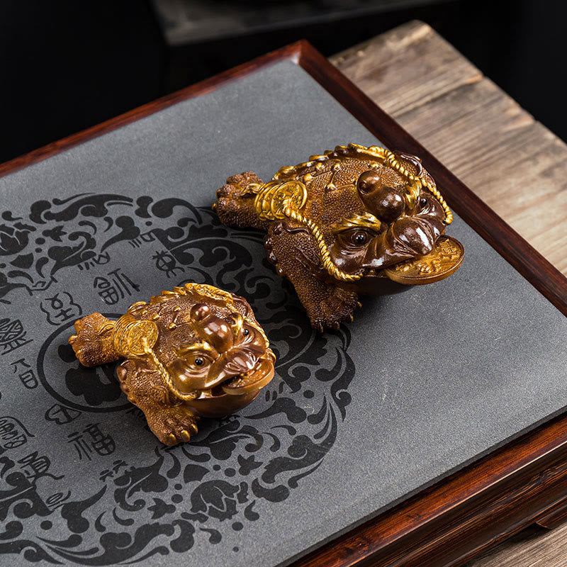 Color Changing FengShui Wealth Lucky Frog Copper Coin Tea Pet Resin Figurine Decoration