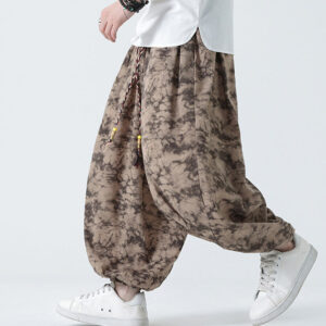 Retro Casual Drawstring Design Floral Pattern Men’s Harem Pants With Pockets