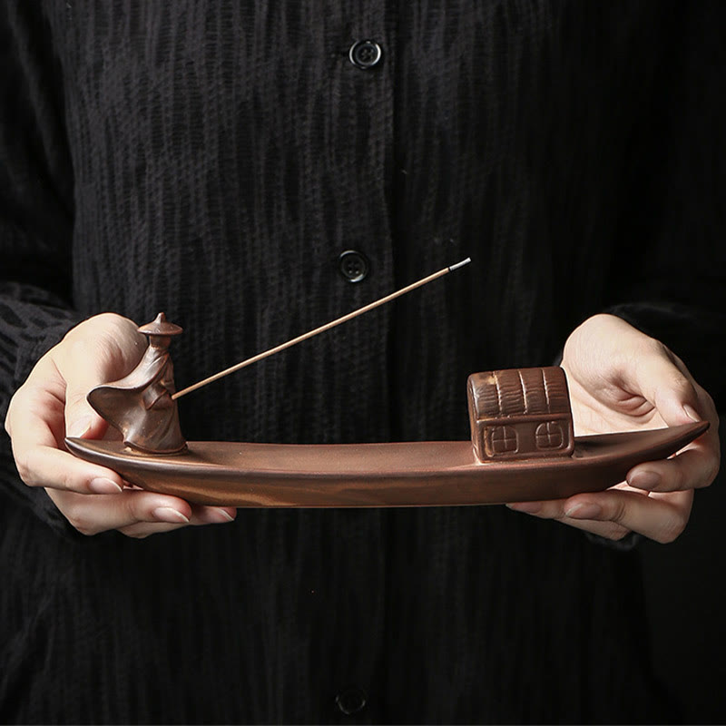 Fisherman Zen Healing Brown Ceramic Stick Incense Burner Decoration