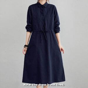 Fall Lapel Buttons Lace-Up Design Cotton Long Sleeve Midi Dress With Pockets