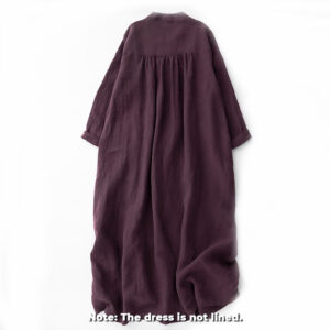 Fall Plain Chinese Frog-Button Design Cotton Linen Long Sleeve Midi Dress With Pockets