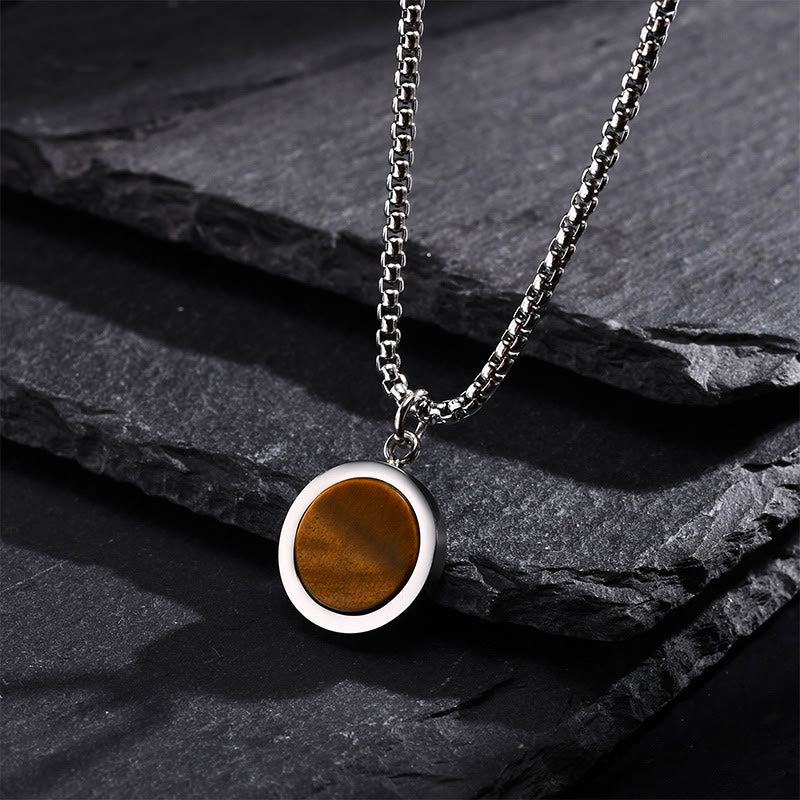 Natural Stone Turquoise Tiger Eye Lazurite Malachite Titanium Steel Purification Necklace Pendant