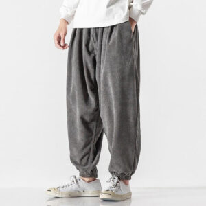 Fall Winter Men’s Drawstring Corduroy Harem Pants With Pockets