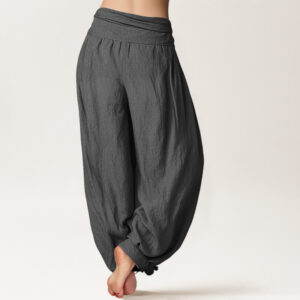Plain Lotus Om Pattern Women’s Elastic Waist Harem Cotton Pants