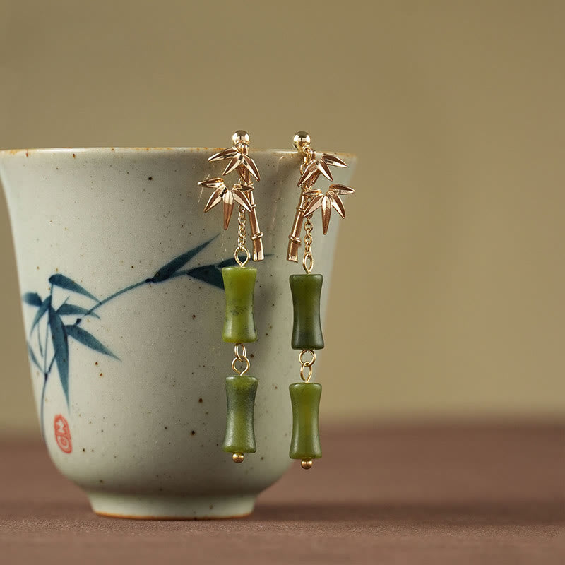 925 Sterling Silver Peridot Bamboo Pattern Luck Bracelet