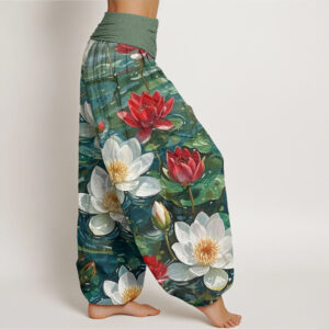 Casual Charming Lotus Flower Pattern Women’s Elastic Waist Harem Pants