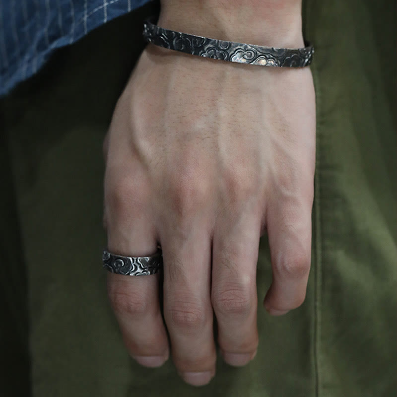 999 Sterling Silver Auspicious Clouds Adjustable Protection Ring
