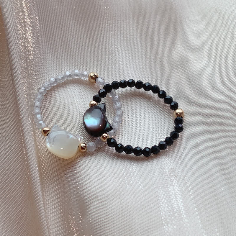 Pearl Cat Head Tridacna Stone Silver Chain Healing Bracelet