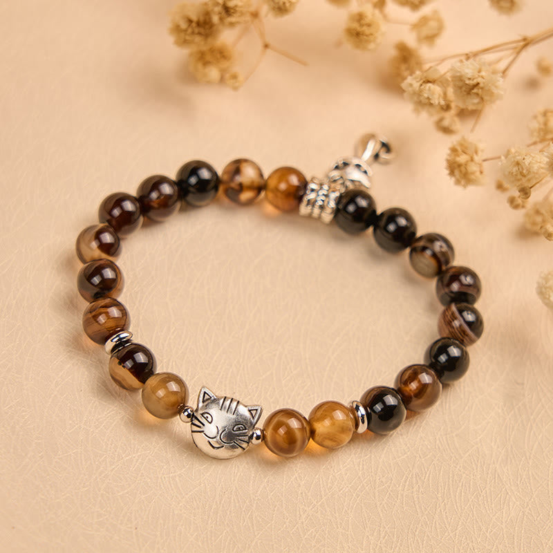 Chocolate Siamese Cat Dark Brown Striped Agate Bead Protection Bracelet