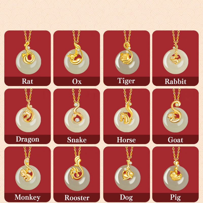 Chinese Zodiac Hetian Jade 925 Sterling Silver Abundance Necklace Pendant