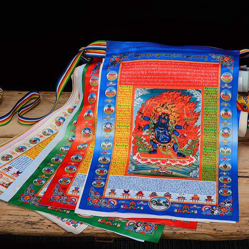 Tibetan 10 Colors Windhorse Buddha Healing Auspicious Outdoor Prayer Flag
