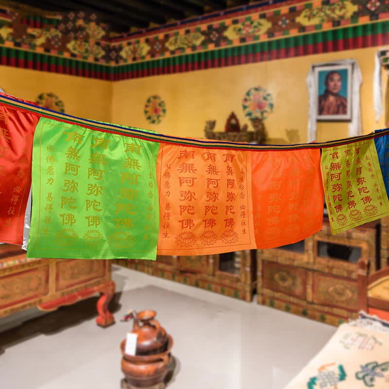 Tibetan 5 Colors Windhorse Blessing Longevity Sutra Outdoor 20 Pcs Prayer Flag Decoration