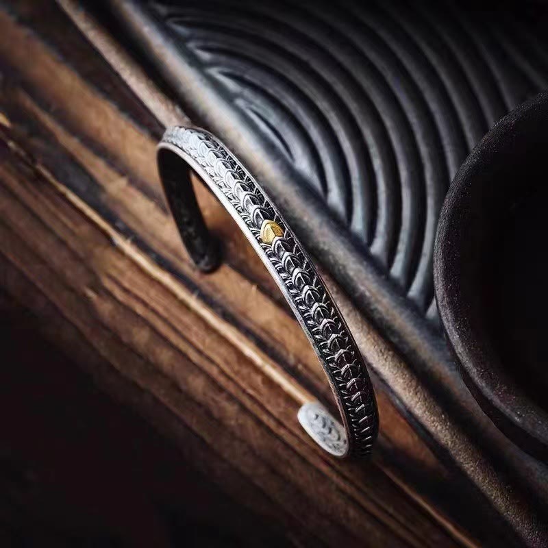 Vintage Dragon Scales Pattern Luck Wealth Cuff Bracelet Bangle