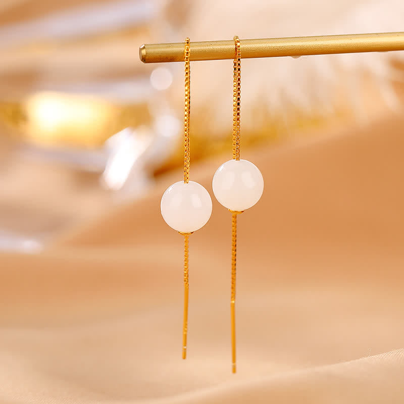 925 Sterling Silver White Jade Beaded Happiness Drop Earrings