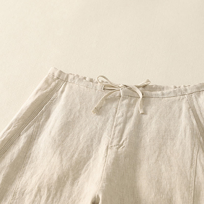 Casual Solid Color Rope Women’s Cotton Pants With Pockets