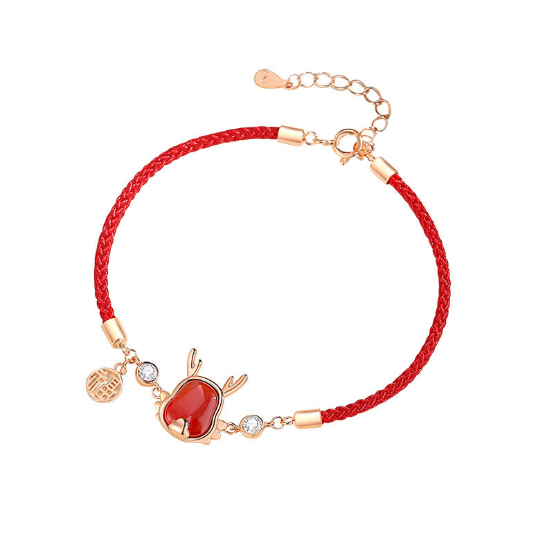 ❗❗❗A Flash Sale- Anyelle 925 Sterling Silver Year of the Dragon Natural Red Agate Dragon Attract Fortune Fu Character Strength Bracelet Necklace Pendant Earrings Bracelet Necklaces & Pendants BS 1