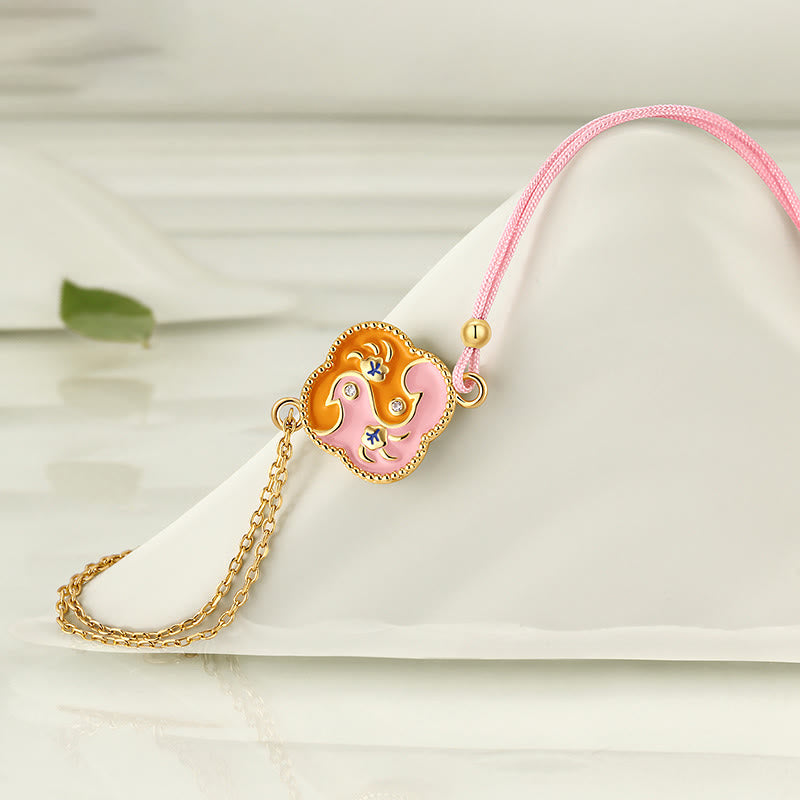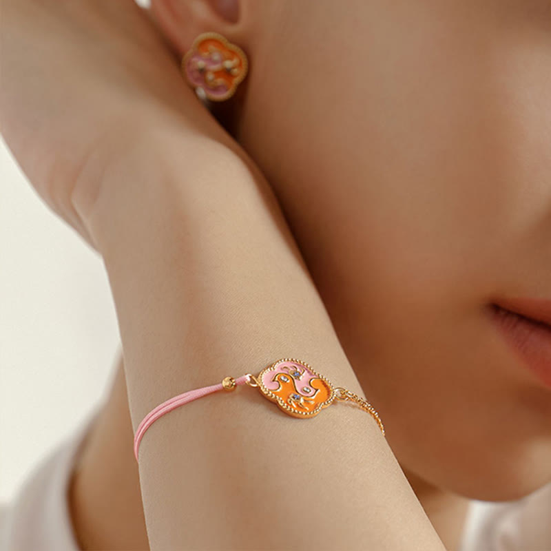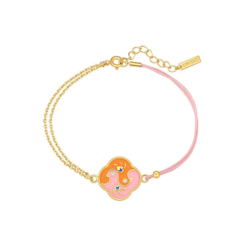 - Material: 18K Gold Plated Copper, Zircon, Enamel, Pink Enamel, Orange Enamel, Rope