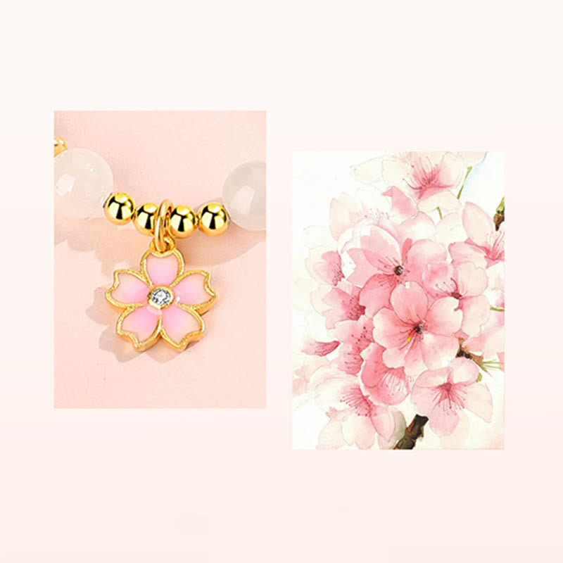 925 Sterling Silver Hetian White Jade Cherry Blossom Protection Bracelet