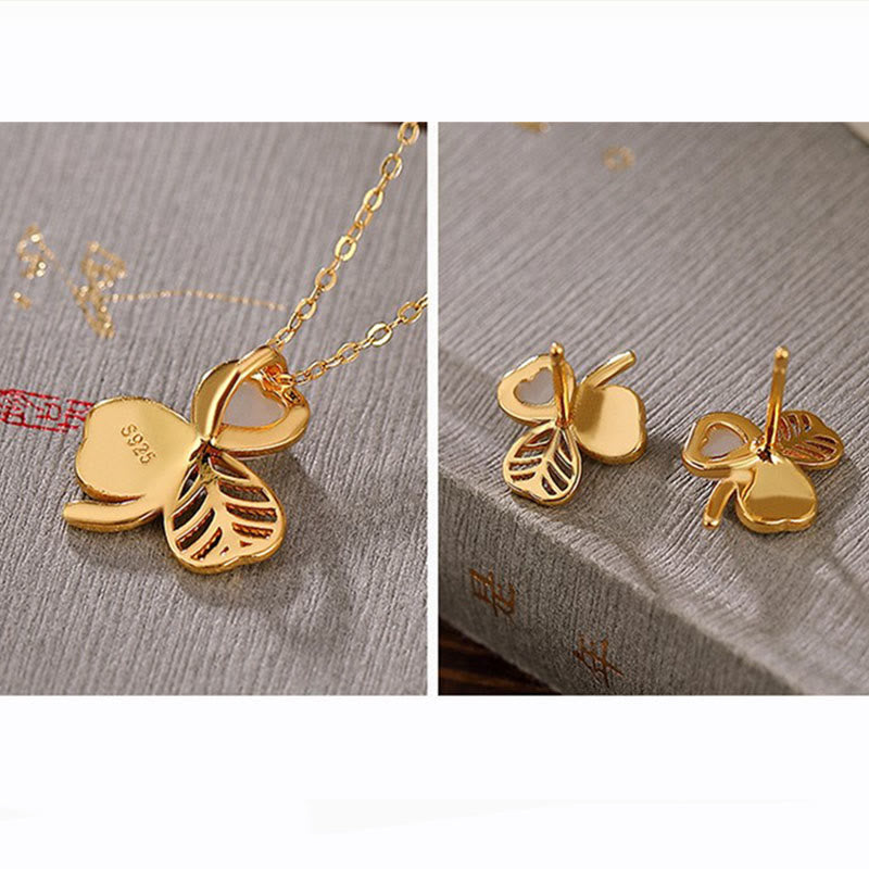 925 Sterling Silver Plated Gold Hetian Jade Luck Shamrock Clover Necklace Pendant Earrings925 Sterling Silver Plated Gold Hetian Jade Luck Shamrock Clover Necklace Pendant Earrings