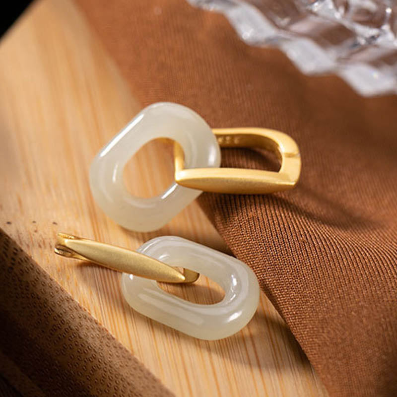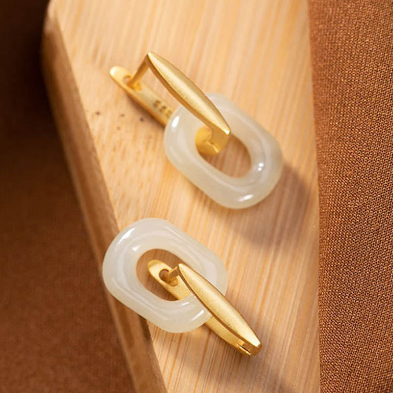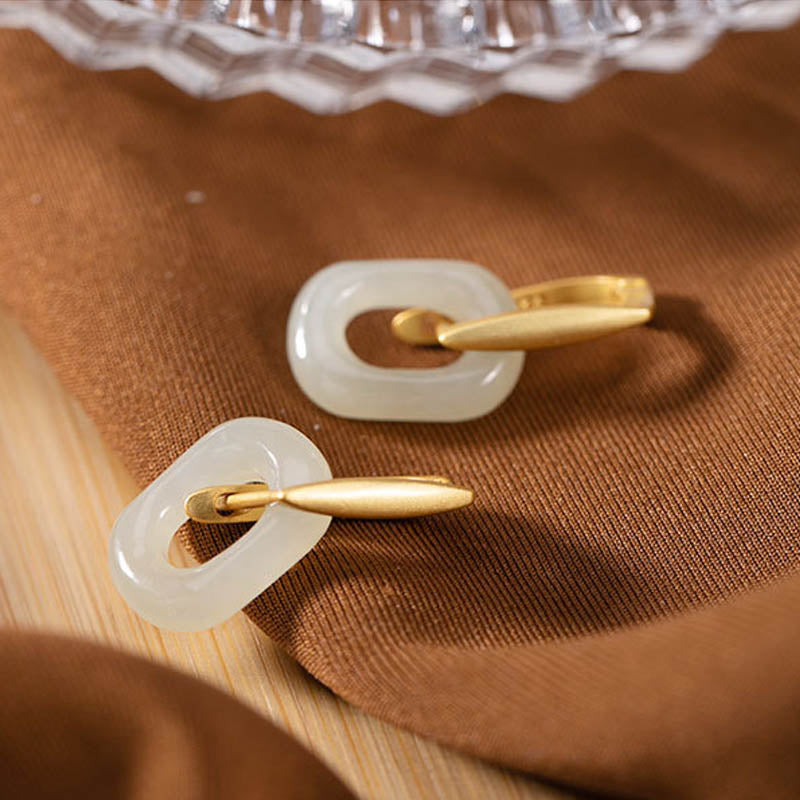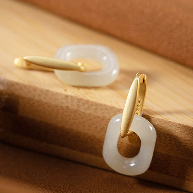 925 Sterling Silver Round White Jade Happiness Blessing Earrings925 Sterling Silver Round White Jade Happiness Blessing Earrings