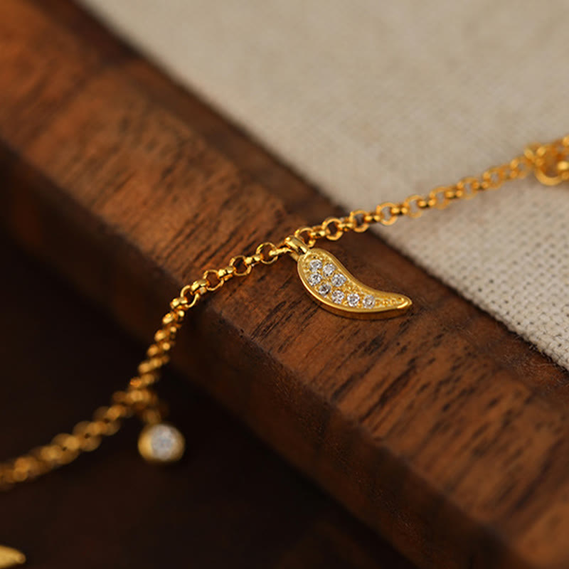 925 Sterling Silver Zircon Little Pepper Charm Protection Anklet