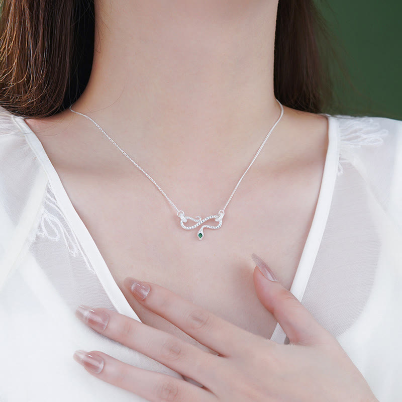 Silver Coiling Snake Necklace Pendant features a sterling silver snake that intricately forms the infinity symbol, representing eternal blessings and continuous transformation. This pendant symbolizes resilience, protection, and endless potential. Crafted with high-quality 999 sterling silver, it serves as a powerful reminder of infinite possibilities, personal growth, and spiritual balance, making it a meaningful talisman.๐