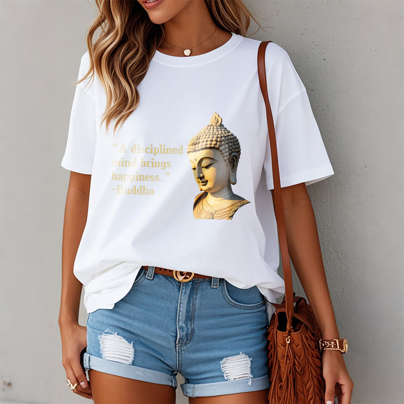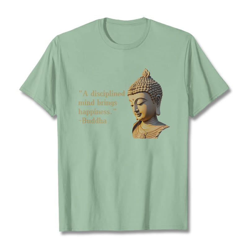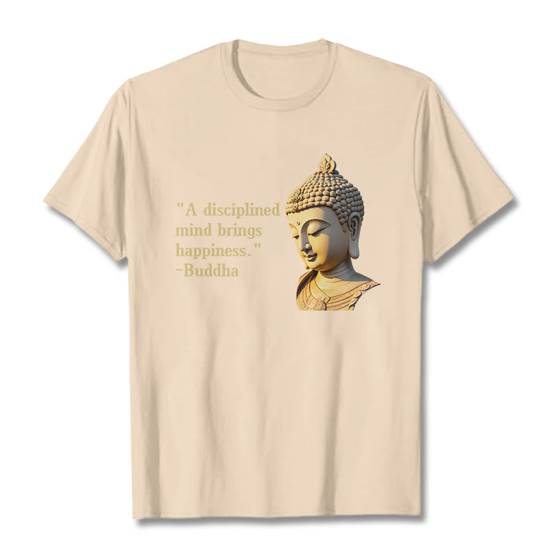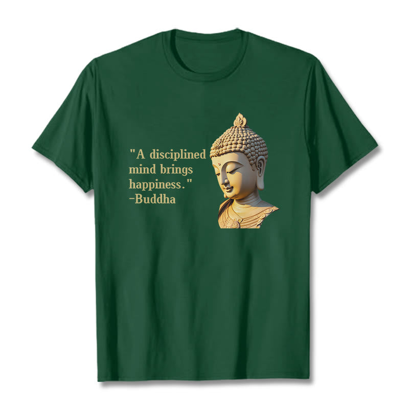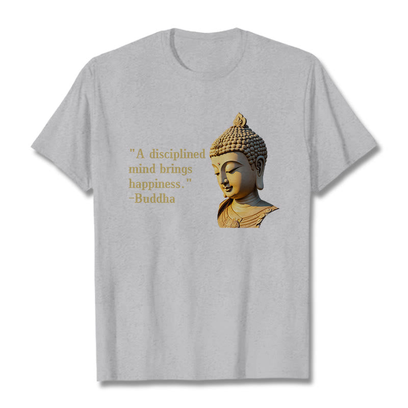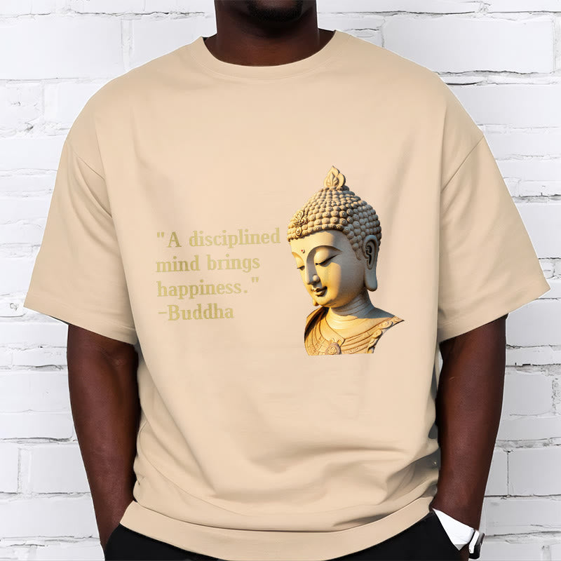 A Disciplined Mind Tee features an insightful Buddha design with the phrase “A Disciplined Mind Brings Happiness.” Made from soft, breathable fabric, this comfortable t-shirt is perfect for meditation or casual wear. The meaningful print and relaxed fit ensure both style and comfort. Embrace the wisdom of Buddhist teachings with this thoughtfully designed tee.