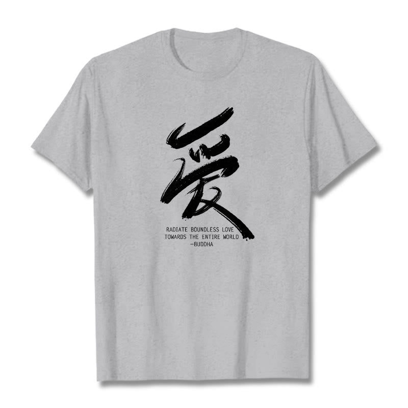 Ai Love Tee T-shirt features the prominent Chinese “Ai” character, representing love, with a message of radiating boundless love to the world. Crafted from soft, high-quality cotton, it carries a profound reminder of the power of love and compassion. This meaningful design encourages spreading kindness and positivity, making it a thoughtful choice for those who value connection and unity.