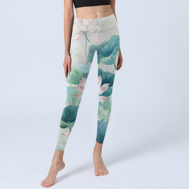 • Design Inspiration: The leggings featuring blooming pink and white lotus flowers and lotus leaves symbolize purity, beauty, and spiritual awakening. The vibrant blossoms represent personal growth and enlightenment, while the lush leaves signify stability and connection to nature, encouraging wearers to embrace their journey towards inner peace and harmony.