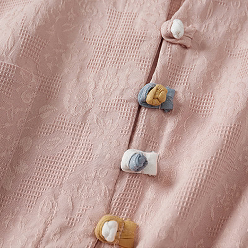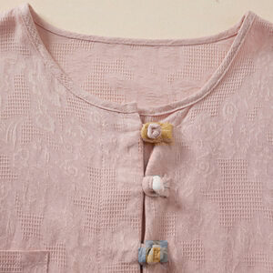 Casual Flower Colorful Frog Button Half Sleeve Cotton Linen Women's ShirtCasual Flower Colorful Frog Button Half Sleeve Cotton Linen Women’s Shirt