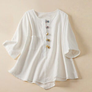 Be the first to review “Casual Flower Colorful Frog Button Half Sleeve Cotton Linen Women’s Shirt”