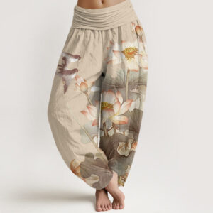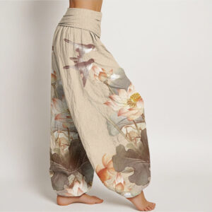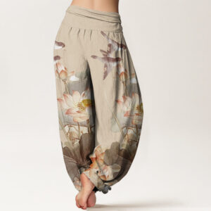 Be the first to review “Casual Summer Lotus Pond Pattern Women’s Elastic Waist Harem Pants”