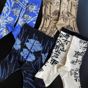 - Artistic Calligraphy & Floral Design: Featuring elegant Chinese calligraphy combined with delicate botanical motifs, these socks celebrate traditional artistry in a modern form.
