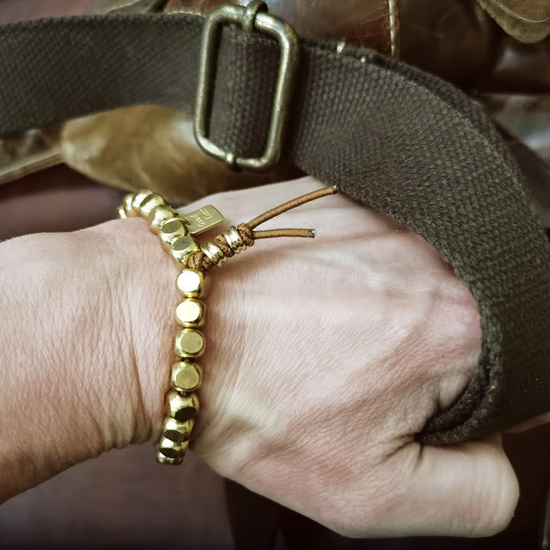 Copper String Bracelet features cube-shaped copper beads strung on a durable brown cord, complemented by a pendant engraved with “Good Luck.” Copper symbolizes grounding and healing, promoting positive energy and balance. The brown cord adds an earthy element, enhancing its natural appeal. This bracelet serves as a meaningful accessory for self-care, offering protection, emotional stability, and a reminder of good fortune.💕