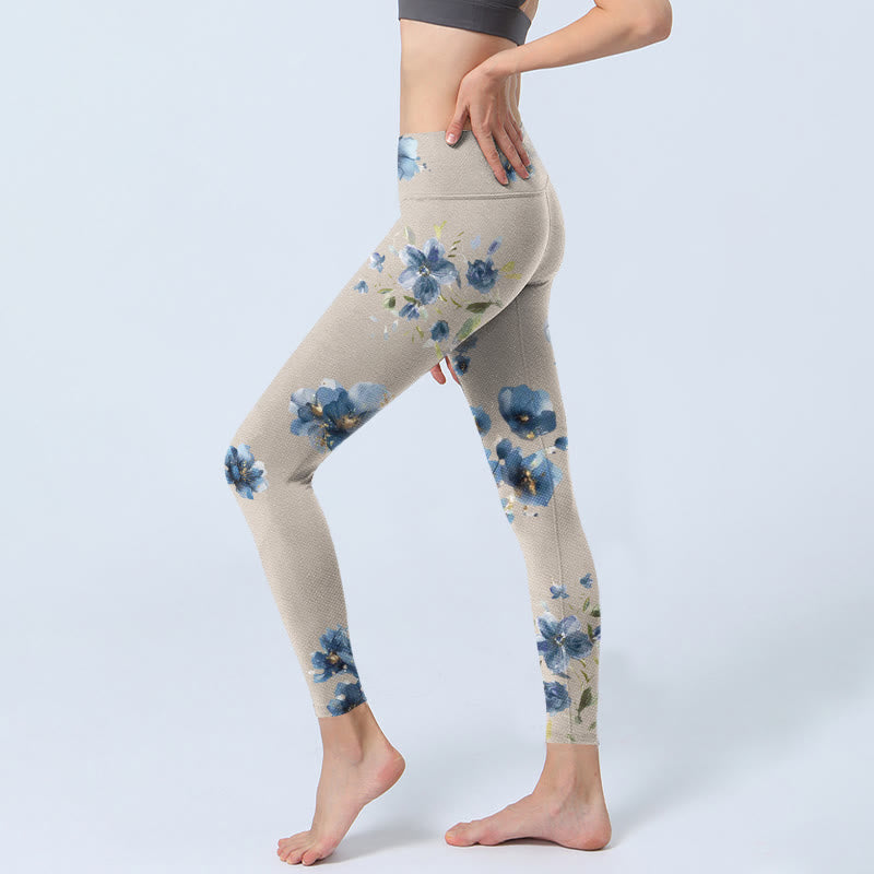 Design Inspiration:The leggings featuring dark blue flowers symbolize tranquility, depth, and the beauty of nature. The rich blue hue evokes a sense of calmness and stability, while the floral design represents growth and renewal, encouraging wearers to embrace their inner peace and connection to the natural world.