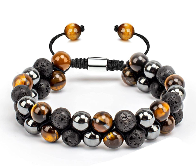 Blue Tiger Eye Volcano, Three color double row, Red Tiger Eye Scrub, Double row yellow tiger eyes, Black Magnet Black Agate Tiger Eye