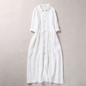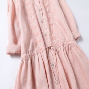 Be the first to review “Fall Embroidery Button Design Cotton Linen Long Sleeve Midi Dress With Pockets”