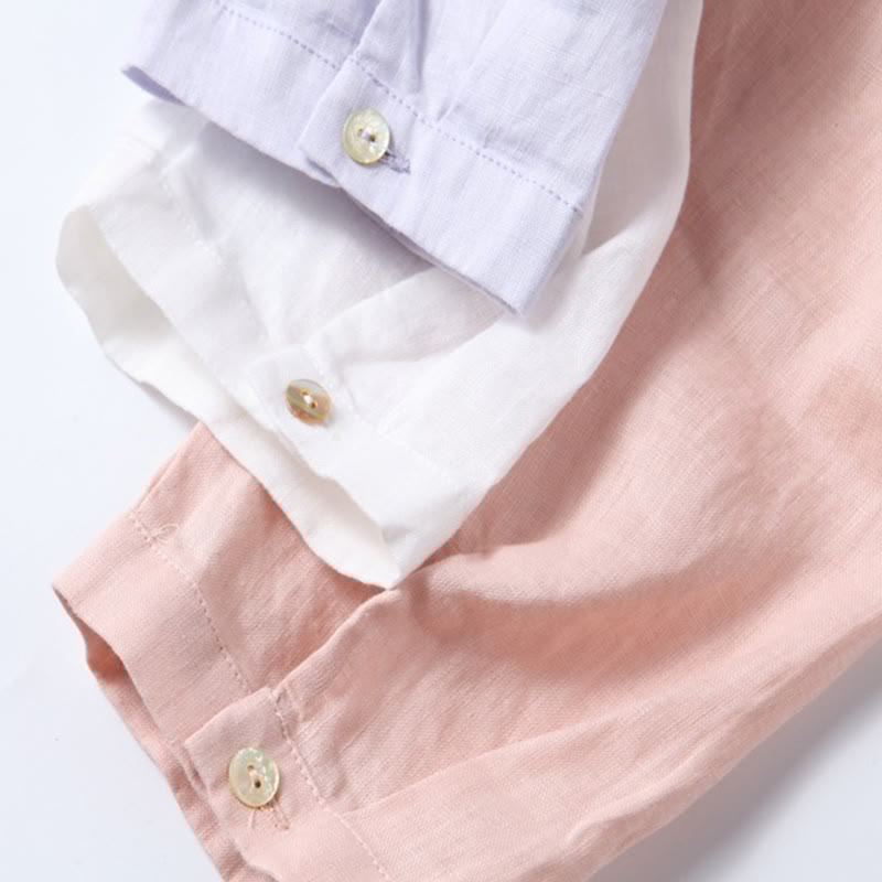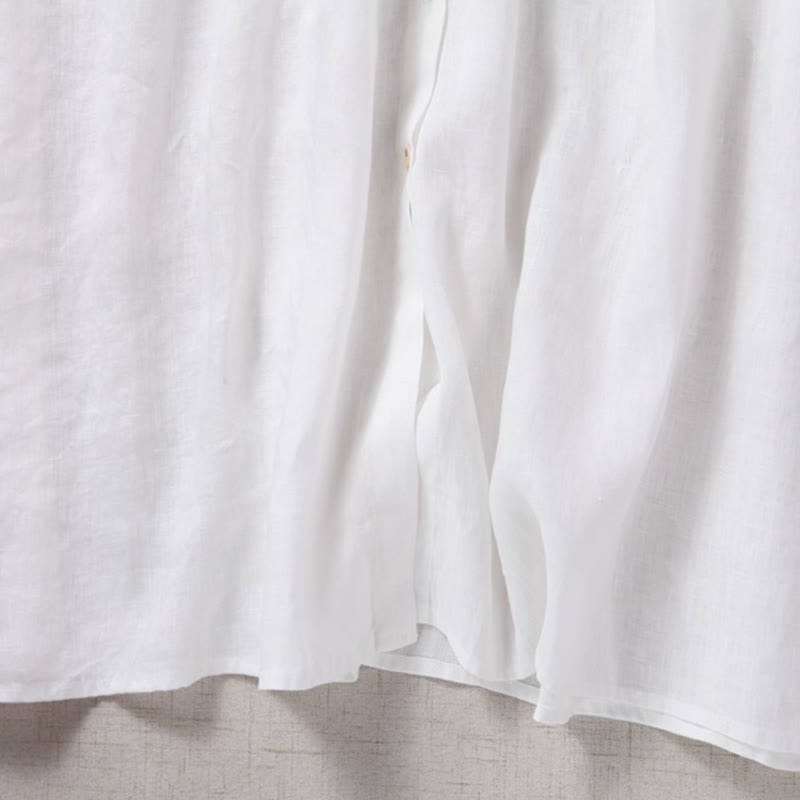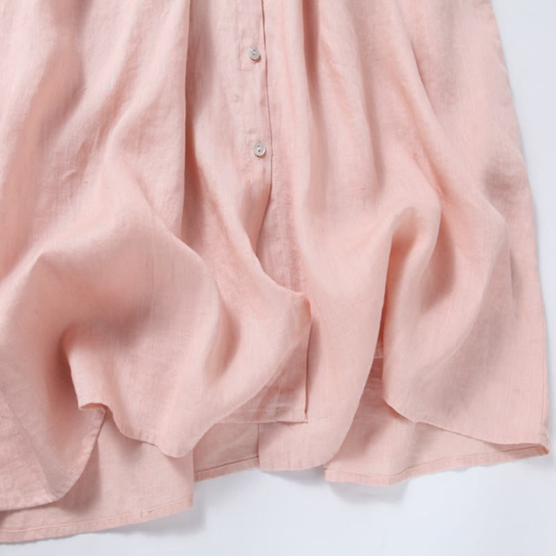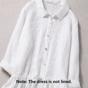 Fall Embroidery Button Design Cotton Linen Long Sleeve Midi Dress With PocketsFall Embroidery Button Design Cotton Linen Long Sleeve Midi Dress With Pockets